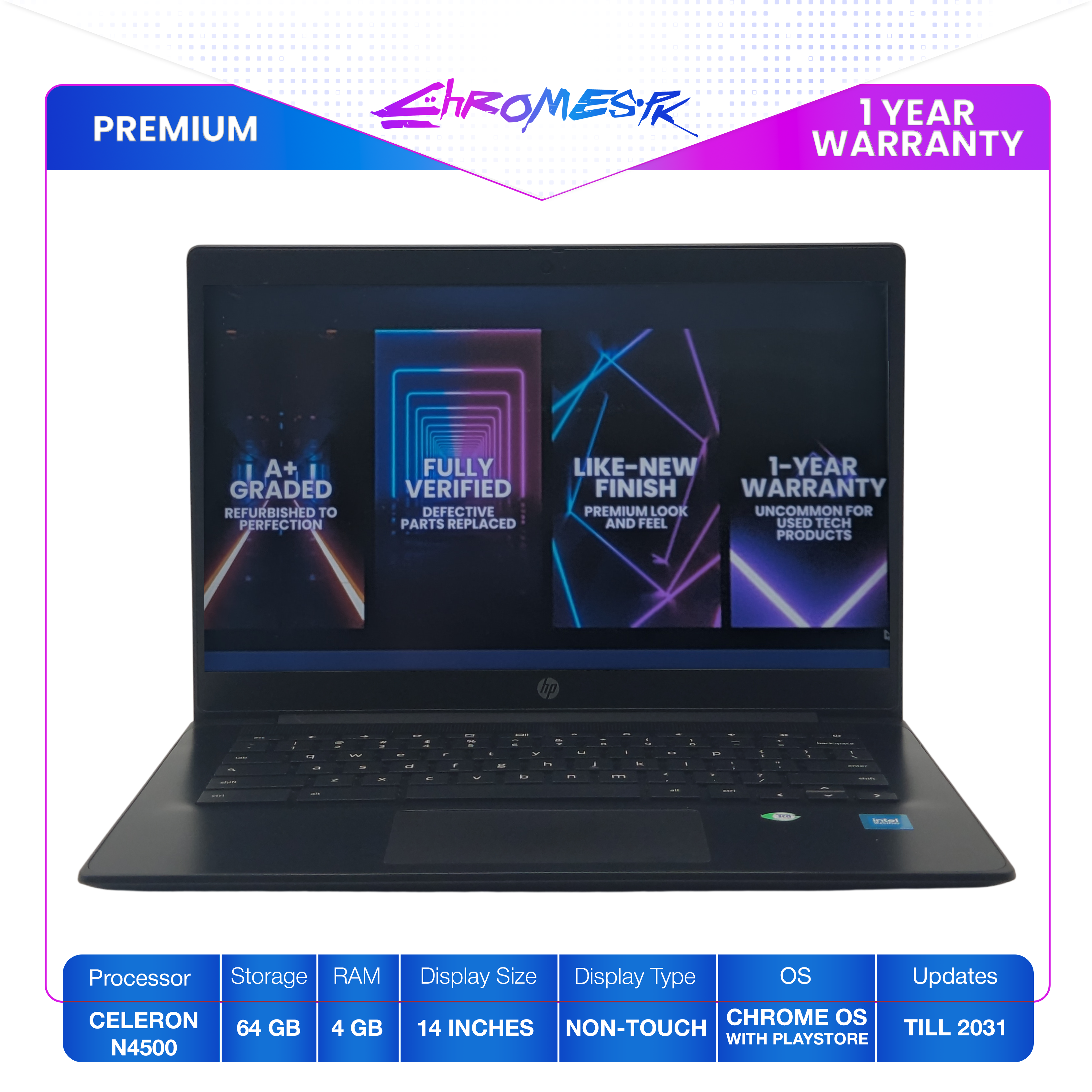 The HP Chromebook 14 G7 combines durability, performance, and simplicity in a sleek 14" form. Powered by Intel Celeron processors with up to 8GB RAM and fast eMMC storage, it’s ideal for students, educators, and everyday users. Its spill-resistant keyboard, rugged MIL-STD tested body, and long battery life make it perfect for on-the-go use. With ChromeOS, you get fast boot-ups, built-in security, and automatic updates until 2031. Certified A+ grade by chromes.pk and backed with a 1-year warranty—this Chromebook is ready for school, work, or life on the move.
