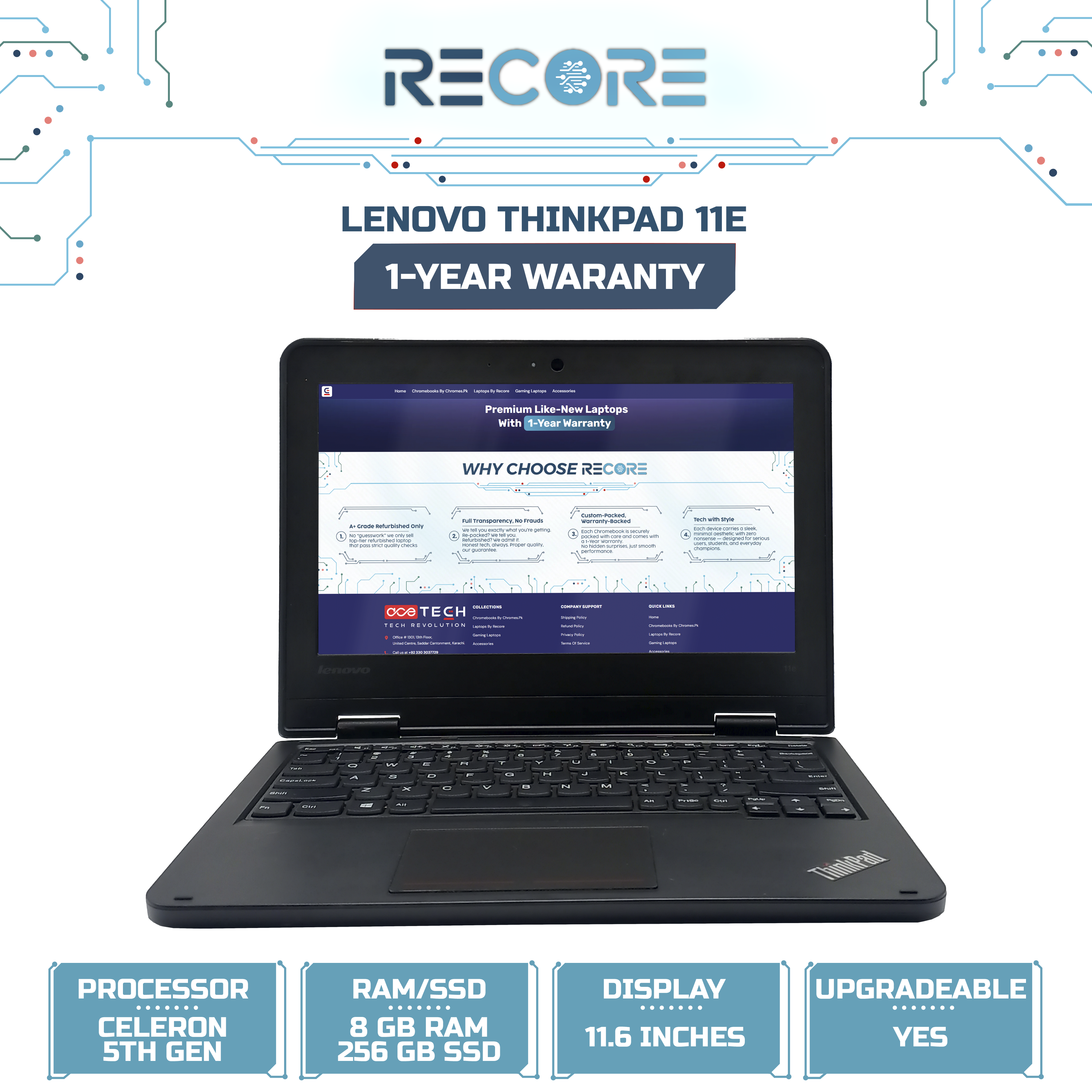 Lenovo ThinkPad 11e – Built to Last. Ready to Perform. | Recore by AceTech The Lenovo ThinkPad 11e is a compact, rugged laptop made for real-world use. With its durable build, spill-resistant keyboard, and 11.6" HD display, it’s ideal for students, travelers, and professionals on the go. Powered by reliable Intel processors and fast SSD storage, it handles everyday tasks with ease. Certified A+ grade under Recore standards and backed by a full 1-year warranty, this like-new device delivers toughness, performance, and peace of mind—without compromise.